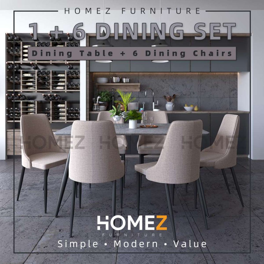 Homez Modern Dining Table Set 1 Table 6 Dining Chairs Shopee Malaysia