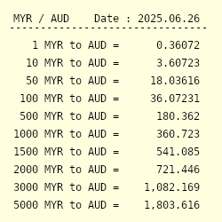 Currency Exchange Rate Australian Dollar To Malaysian Ringgit